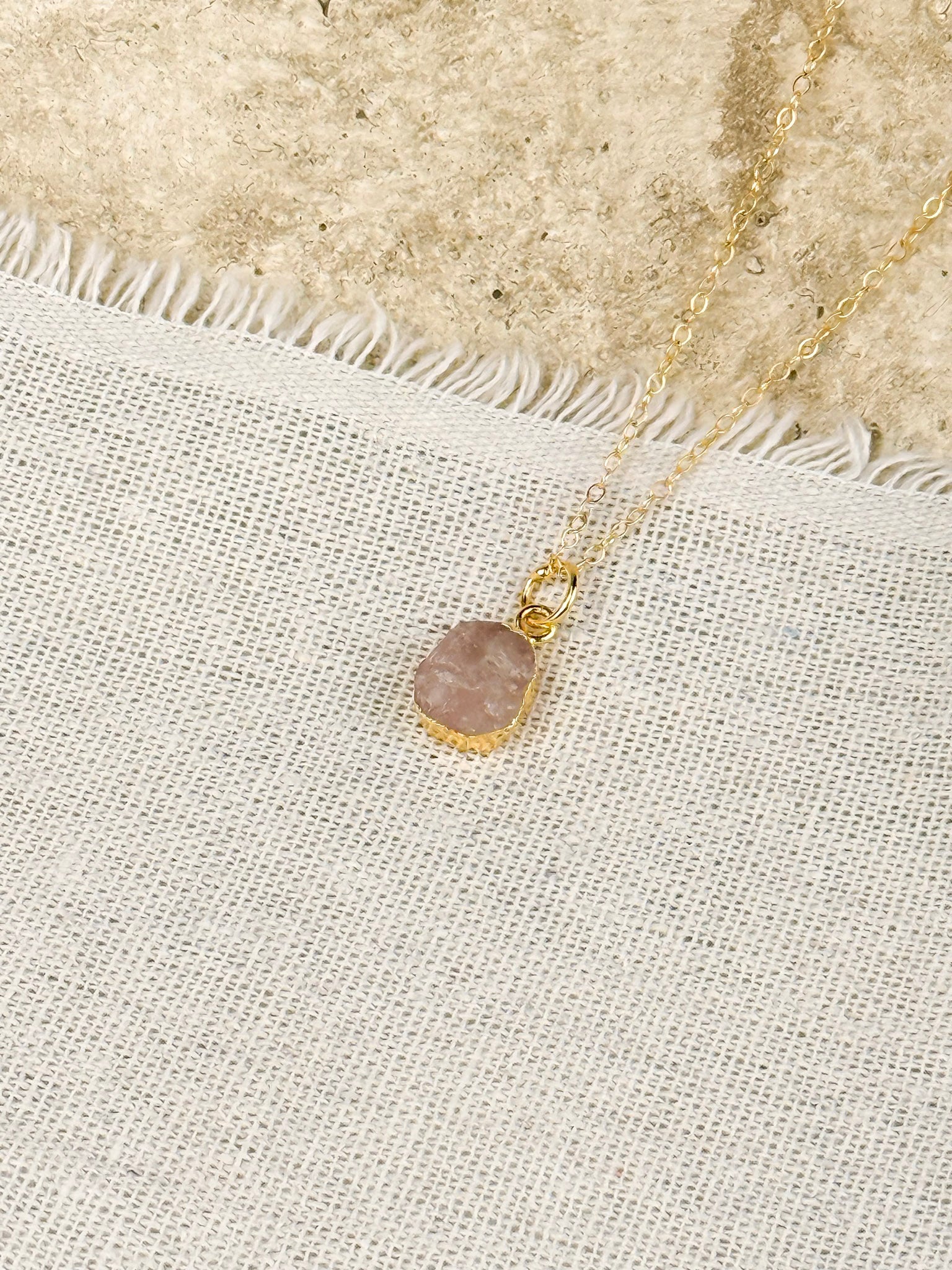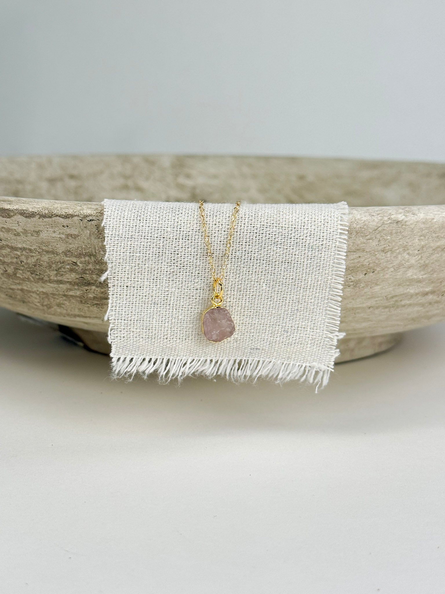 Handcrafted with care in small batches, The Aurora Necklace captures subtle beauty in its raw pink quartz pendant — each one slightly unique. Designed and made by Studio Hill Designs, this delicate piece adds a natural feminine glow to any look.